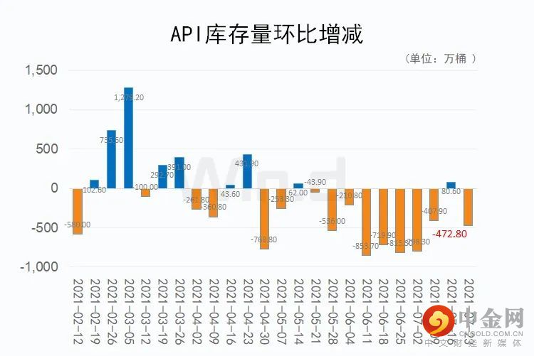 美国至7月23日当周API原油库存录得减少472.8万桶,预期值为减少343.3万桶。从数据而言,API库存在经历短暂回升后再度下降,而且比预期下降数量还多129.5万桶。库存的大降也在一定程度反映出需求的增加,也给予价格上的支撑。不过,从国际油价走势来看,油价方向暂未明朗,美油在V字型反转后,出现震荡,对于前期高点76.98美元/桶迟迟未能攻破,伴随着全球新冠病毒病例有回升态势,油价不确定因素明显增加。