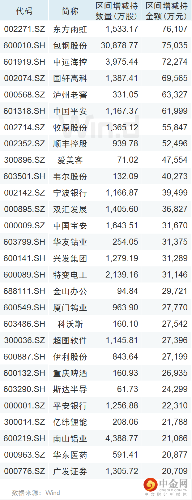 (注:增减持金额 = 增减持数量 * 7月28日收盘价,下同)