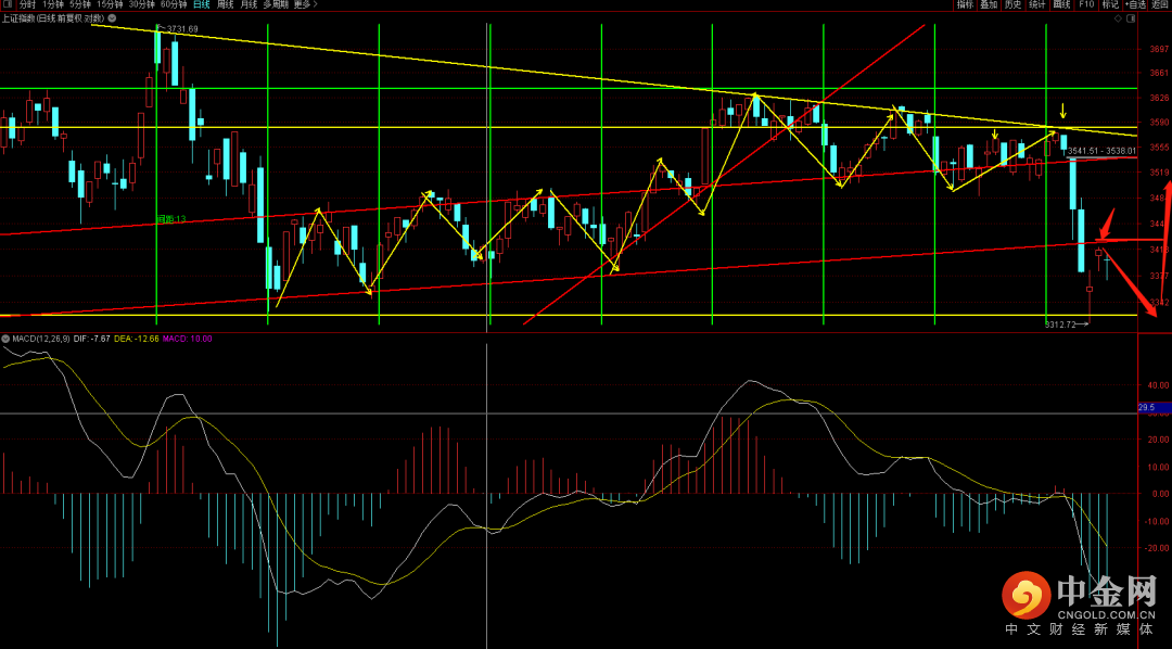 大盘短期已经临近前期上升趋势轨道下轨,短期这个位置如果无法快速突破大概率会有再次的折返,关注后续收盘点位,如果收盘跌破3355则大概率还会有新低的可能性存在。后续行情如果有出现再次的新低注意把控节奏点。由于这段下跌的快速后续被跌破的均线大多会出现再次的回抽。