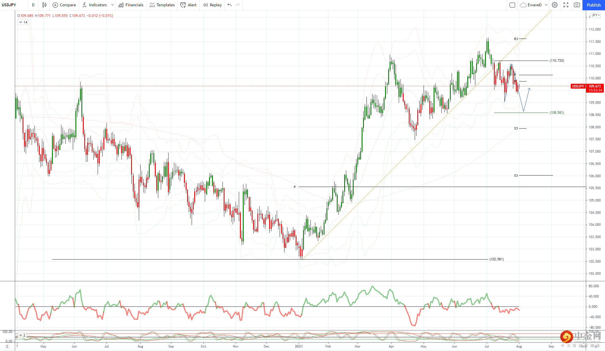 USDJPY 日内偏差:看涨高于 109 看跌低于