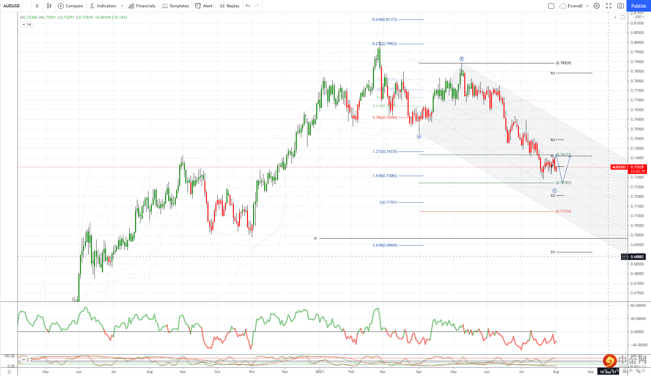 阻力位于 21 日均线 0.7411,突破缓解下行压力
