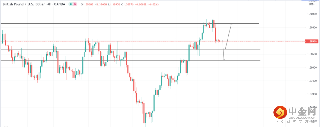 美元指数受支撑,英镑下跌,关注1.38670的支撑位置,4小时回调收多即可看多至压力位1.39645,止损1.38536;关注1.39067压力位,4小时受阻收空即可看空至1.38267支撑位,止损1.39192