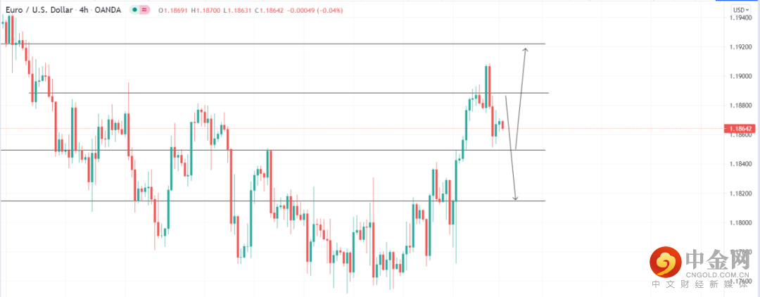 美元指数受支撑,欧元下跌,关注1.18495支撑位,4小时回调收多即可看多至1.19220,止损1.18403;关注1.18885的压力位,4小时受阻收空即可看空至1.18148,止损1.18976