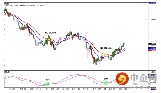 同样,5 月底 MACD 的买入信号没有伴随任何移动平均线交叉。