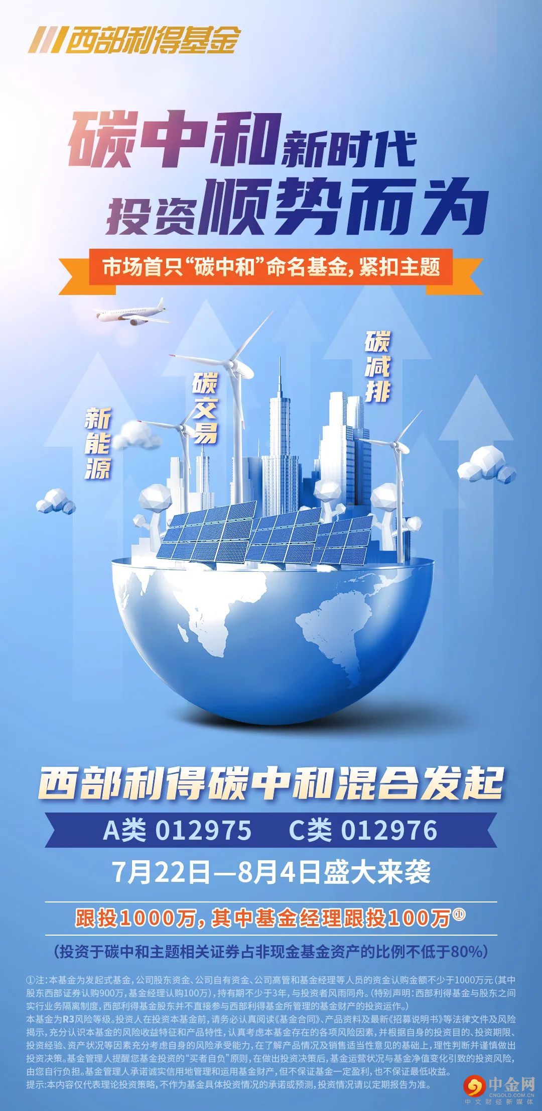 新发基金,西部利得碳中和混合基金(012975)(交易日9:15-15:00点击可买入),认购日期2021.07.22-2021.08.04;行业配置,聚焦新能源、碳交易、碳减排;个股选择,精选龙头,挖掘潜在白马。主要关注电力、交通、工业、新材料、建筑、负碳排放、信息数字等领域中,以及可能出现的对现有行业产生影响的技术创新点,从而把握“碳中和”的大趋势。