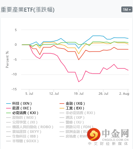 目前市场环境继续保持趋平调整阶段,美国股指期货小幅上涨。虽然美国美国参议院就基建法案达成一致提振了市场情绪,但近期严峻的疫情抑制了涨幅。从现阶段ETF的产业走势的表现,整体ETF产业继续趋于平缓走弱阶段中,其中能源产业依旧处于弱势下行中。短期关注:原物料(MXI),公用事业(JXI),医疗(IXJ),生物科技(IBB),半导体(SOXX)等产业中个股的多头机会。