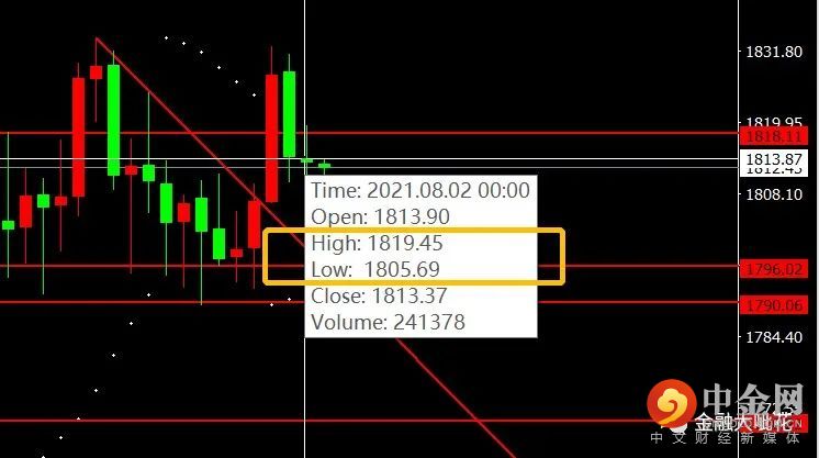 日内亚盘先是上探1818阻力未果回落,欧盘于1805一带获得支撑后重新上扬,美盘再度冲击1818阻力失败,后收于1812。