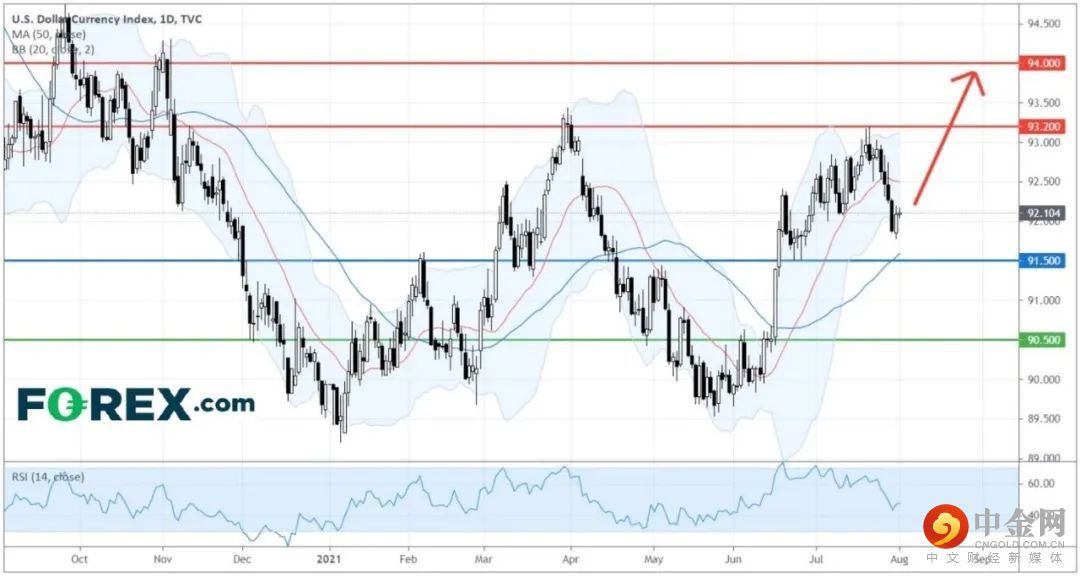 若美元指数能走出整固阶段,重新上探93.20点,预计将进一步升向上方94.00点进发。