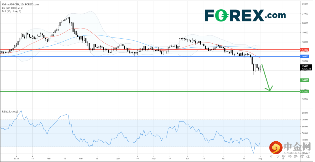 上周 中国A50指数CFD 因市场担忧中国政府会加强监管,而导致市场出现恐慌性抛售,指数最多下泻约11%。随后,中证监与国际投资银行高层会面,并表示对教育业的监管是针对性,并不会伤害其他行业。