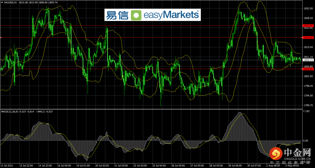 技术上黄金上方1815美元附近关键压力,突破看1820美元附近,支撑是1806附近,1800美元附近。指标看布林线开口横盘,MACD指标处于低位震荡中。鉴于上下方位置重要性,短线可以尝试高抛低吸交易,突破则反手追单。
