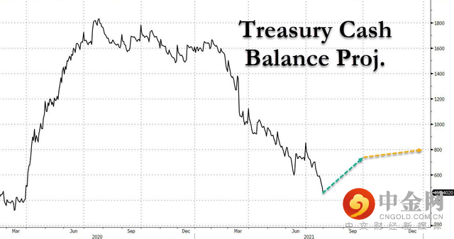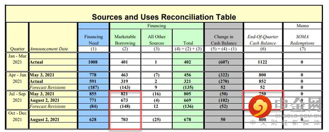 根据周一公布的融资计划来看,美国财政部计划在2021年下半年融资近1.4万亿美元,预计年底TGA余额在8000亿美元,这远低于2020年底持有的1.7万亿美元现金。