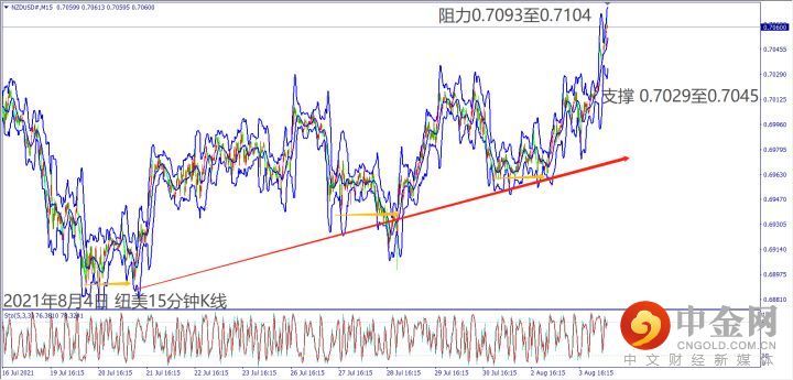 日级别线图,连续上涨突破盘整顶部,守住240日均线支撑,有望突破60日均线;15分钟K线,近期形成盘涨,守住0.7000关口,有机会挑战上方阻力。