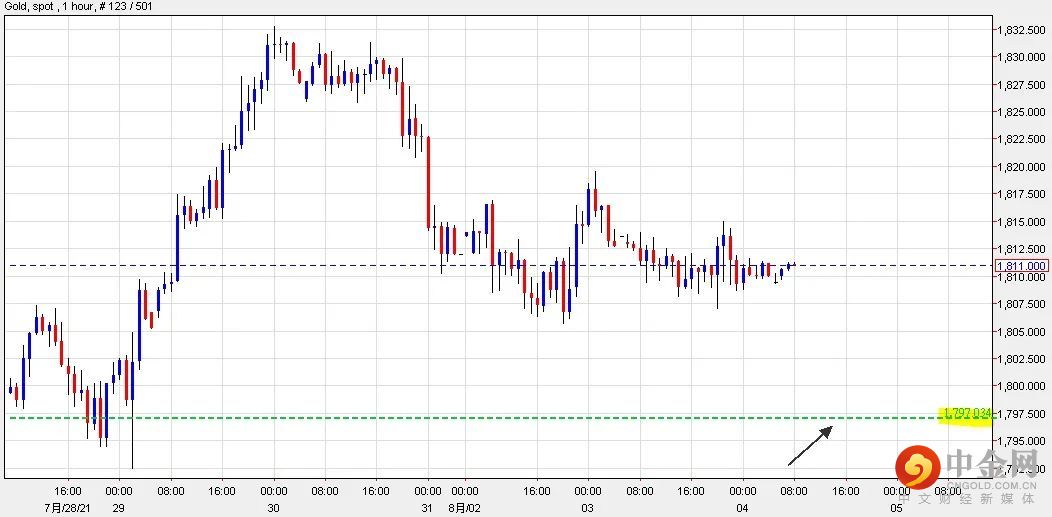 可以部署在$1,797美元左右建立好仓盘,短线看高金价一线至$1,823美元水平止损在$1,789美元。