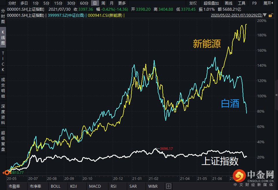 因为肩负重任,所有资金也拼命往新能源挤,导致估值居高不下。