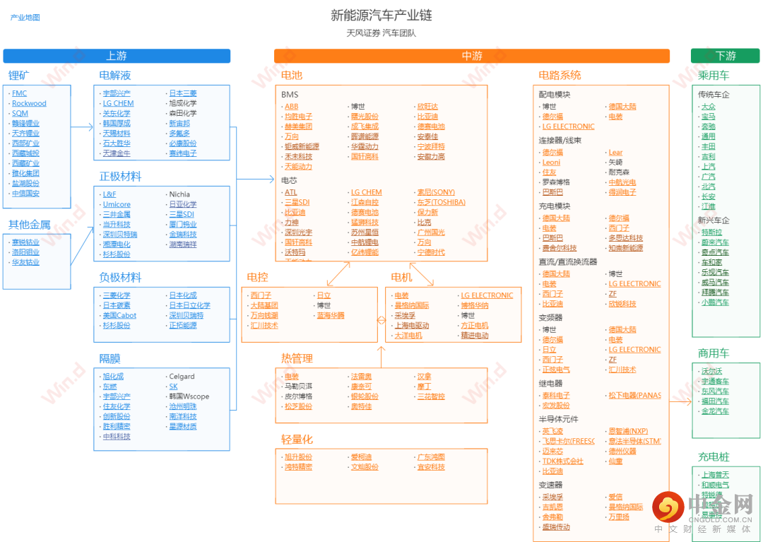 除了开发国内消费市场,新能源汽车还能带动上下游企业的发展。看看这新能源汽车的产业链,再回想过去二十年房地产带起的上下游,有没有熟悉的感觉?