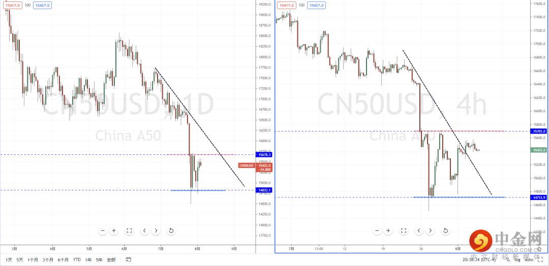 A50指数天图:目前行情继续处于在空头阶段中,上方水平压制带在15678.3附近。从日内4小时级别,价格虽然有短期突破下降趋势线,但能动不足,依然受阻。可继续关注价格回测上方压制带受阻后的空头机会,下方目标位置参考前期低点附近。