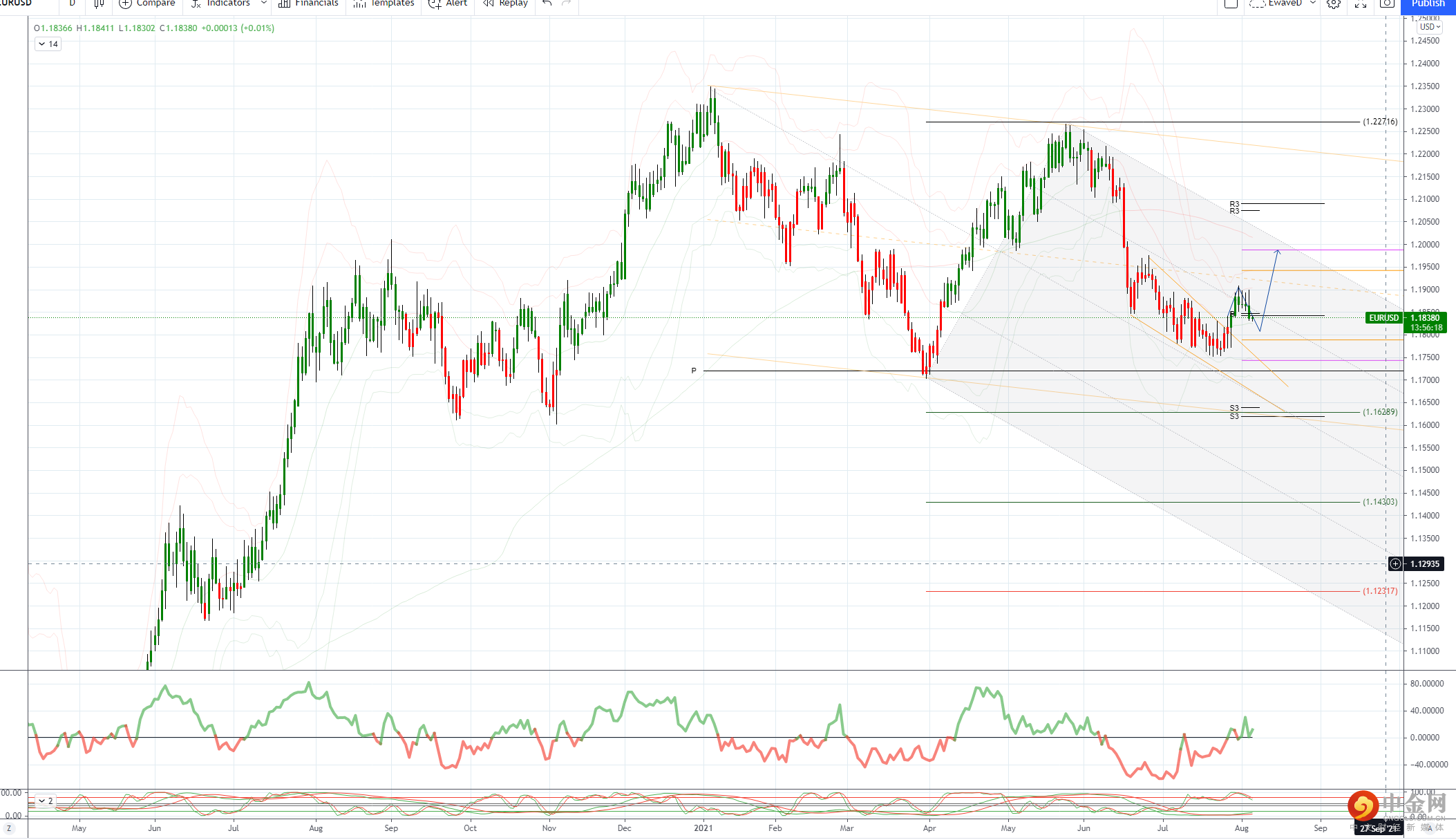 支撑位在 21 日均线 1.1826,突破后在 1.1750/60 开盘
