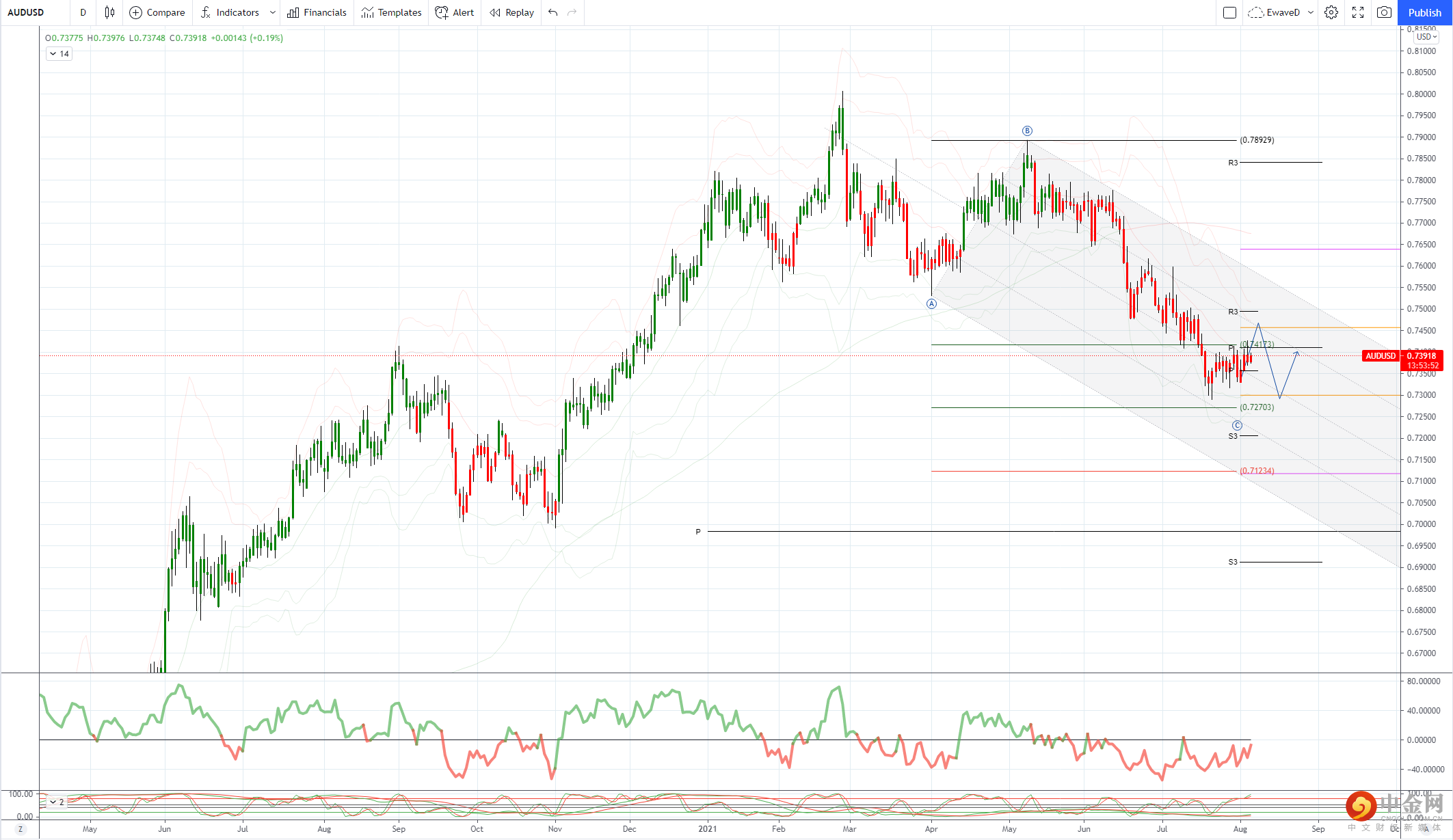 AUDUSD 日内偏差:低于 0.75 看跌 高于看涨