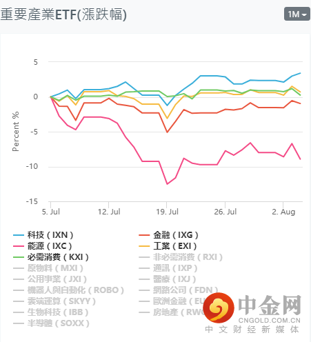 由于目前市场受到美国相关数据影响,道指期货跌超100点,美国ADP就业人数爆冷,仅新增就业人口33.0万,远低于市场预期。疲弱的就业数据虽然降低了美联储提前收紧货币政策的概率,意味着美国经济复苏前景变得暗淡。从现阶段ETF的产业走势的表现,科技类小幅上行,其产业继续趋于平缓走弱阶段中,其中能源产业继续在弱势。短期关注:科技(IXN),原物料(MXI),工业(EXI),公用事业(JXI),医疗(IXJ),生物科技(IBB),半导体(SOXX)等产业中个股的多头机会。