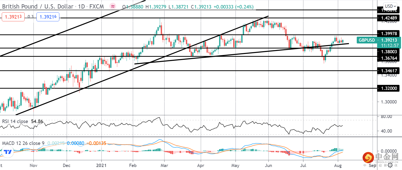 1.3997 关口现在看起来真的是英镑兑美元的成败。在从 1.4248 第二次下跌之后,如果价格从这个峰值跌破,我们正在考虑潜在的双顶情景,将重点放在跌破上。然而,如果价格能够突破当前阻力位,与看涨的 MACD 和 RSI 一致,那么焦点将重新回到对当前年初至今高点的测试上。