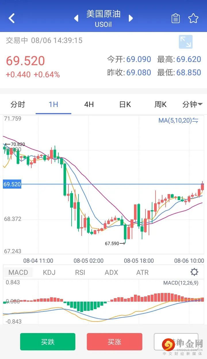 周四(8月5日)WTI原油在本周以来累挫逾8%下暂时止住跌势,自低位67.59反弹至日内高位69.33美元,终结连续三日下跌,因美国劳工部报告显示,截止7月31日当周美国初次申请失业金人数为38.5万,较之前一周修正值下降了1.4万,这在一定程度上缓和了市场对美国经济复苏前景担忧。