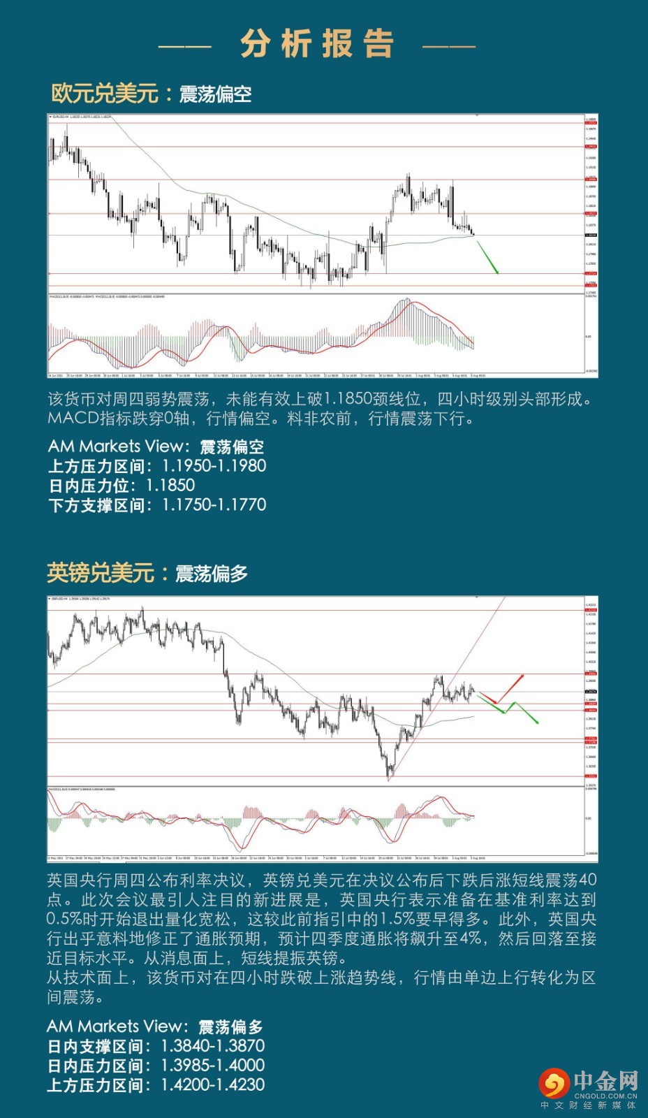 周四市场窄幅震荡,美元指数小幅收涨。美国非农前,市场相对谨慎,避险资金撤退,黄金下行至1800附近。 此外,英国央行周四公布利率决议,英镑兑美元在决议公布后下跌后涨短线震荡40点。此次会议最引人注目的新进展是,英国央行表示准备在基准利率达到0.5%时开始退出量化宽松,这较此前指引中的1.5%要早得多。此外,英国央行出乎意料地修正了通胀预期,预计四季度通胀将飙升至4%,然后回落至接近目标水平。从消息面上,短线提振英镑。 周五非农数据将成为近期的重要参考,若数据利多美元,将进一步强化美联储“鹰派”讲话的预期,提振美元。若数据利空美元,市场将进一步消化数据影响,加剧短线的震荡幅度。