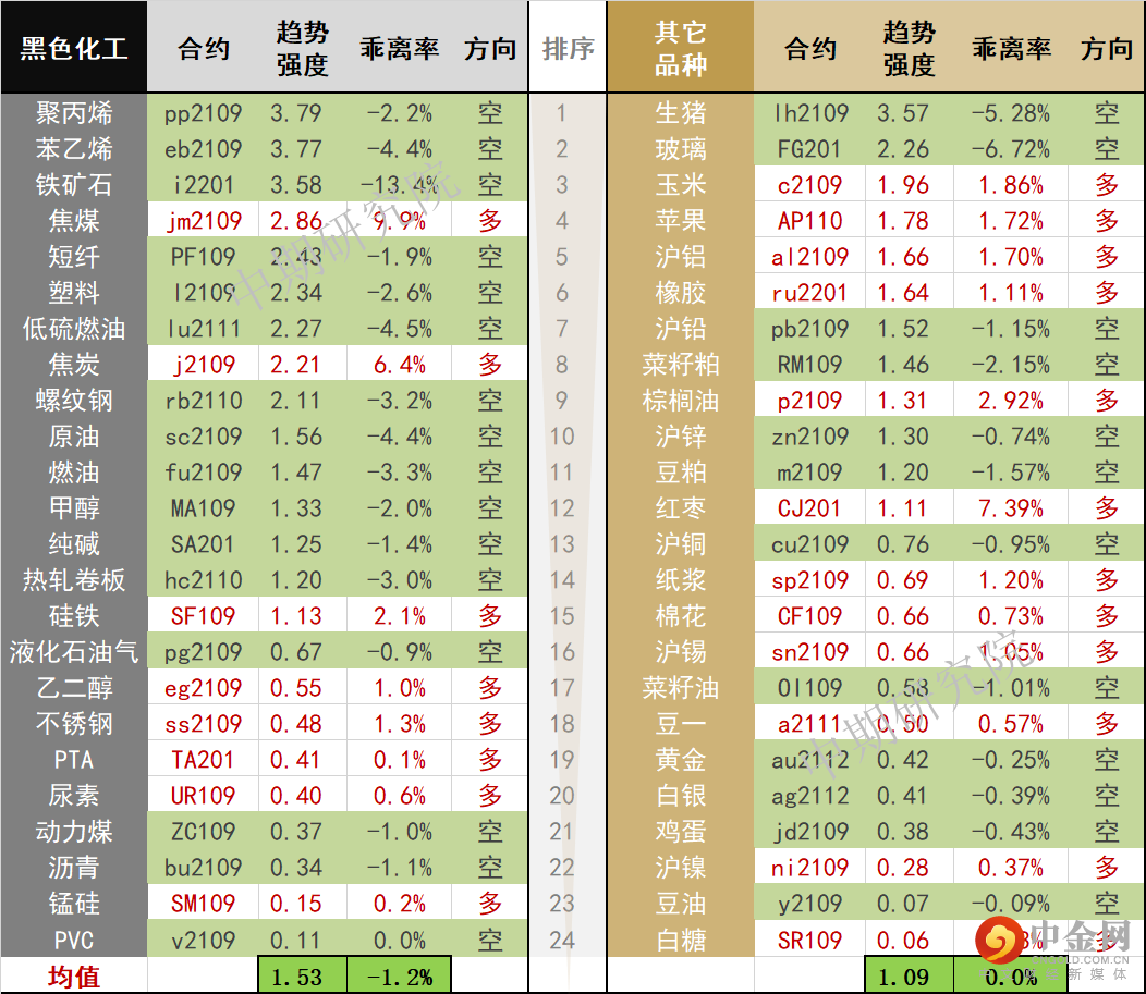中期商品趋势榜 | 关注高位品种趋势变化(0805)