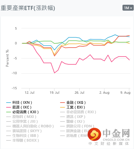目前市场环境虽然受到利好数据的冲击,但从盘面上美国股指期货涨跌互现,在前期创出新高后道指期货和标普500指数期货下跌,纳指期货微涨。另外由于持续扩散的德尔塔(Delta)变异毒株可能冲击经济和就业市场复苏,尤其是休闲服务行业。从ETF的产业走势的表现,近期也处于趋平阶段,产业之间的分化依然严重,因此也需要注意市场风险。短期关注:科技(IXN),金融(IXG),公用事业(JXI),医疗(IXJ),云端运算(SKYY),欧洲金融(EUFN),生物科技(IBB),等产业中个股的多头机会。