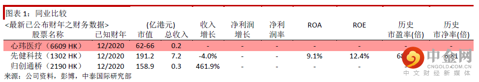 同业比较及估值水平:我们选取两家拥有同类型产品的医疗器械公司作为对标:先健科技(1302 HK)、归创通桥(2190 HK)。由于公司尚未产生盈利,从市值角度来看,同业平均约在200亿港元。公司按全球公开发售后的3,883万股本计算,对应市值为62-66亿港元。