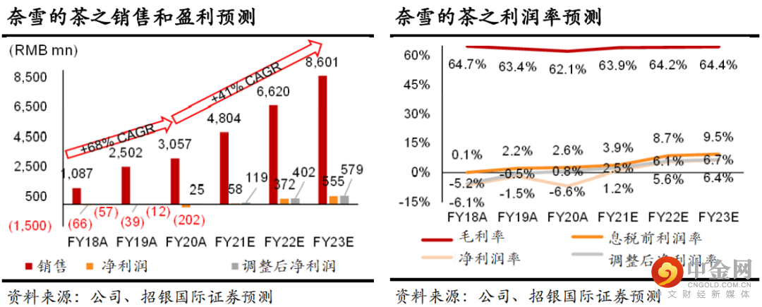 奈雪的茶打造最一流和最高贵的茶饮品牌,首予「买入」,目标16.68港元。奈雪的茶(2150 HK)是中国领先的高端现制茶饮连锁企业,销售在中国高端现制茶饮店/茶饮行业中排名第二,在2020年市场份额18.9%/0.7%。我们认为奈雪之茶具有很强的竞争力,其在大众点评上的用户评分(5.0 分中的 4.5 分)和每家店每日的堂食销售(我们估计 20 年的堂食翻坐率为 4.3 次)都领先行业,而产品价格定位较高(每笔订单的平均销售 43.0 元)。凭借其研发实力和供应链能力、卓越的门店设计和服务、有效的广告投入,公司成功拓展到不少顶级的购物中心(50 个中的 28 个),我们对其门店扩张充满信心,并预期公司通过数字化和成熟的门店的占比提升,令净利润率将可达到合理的水平。我们预测公司在20-23年销售/调整后净利润的复合年增长率为41%/180%。我们首次覆盖奈雪的茶,给予「买入」评级,以DCF方法得出目标价16.68港元,相当于 3.6 倍的22年预测市销率,比九毛九的 4.0 倍有 10% 折让,比星巴克的 4.4 倍亦有18% 折让,但比中国同业的平均 2.3 倍有约59%的溢价,因为公司在20-23 年的预测销售复合年增长率远远高于行业。目前估值只为 22年预测市销率/市盈率2.1 倍/ 35 倍,而中国同业龙头的平均为 2.3 倍/ 25 倍。