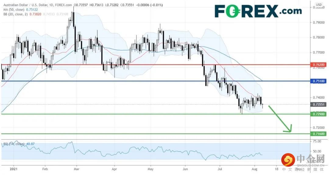 短期支持位在0.7290。此位一破,澳元/美元将跌向另一下行目标0.7160。
