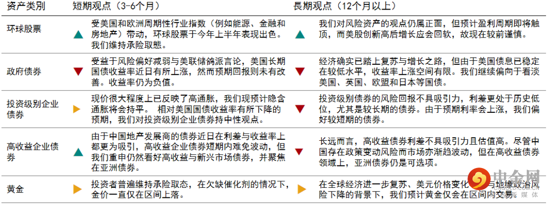 注:短期观点(3-6 个月):用于战术性资产配置时,对相关资产类别相对短期的战术性观点。长期观点(12个月以上):用于战术性资产配置时,对相关资产类别相对长期的战略性观点。