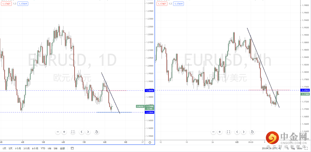 欧美天图:目前趋势因受到美元承压,使得欧美在关键支撑带1.17019附近止跌反弹。上方水平压制带在1.18416附近,从日内4小时级别,价格在有效突破下降趋势线的压制后也处于在关键位置徘徊,短期可关注价格在此区间的表现,如果突破压制后期将继续反弹向上,目标位置可参考1.17777附近。