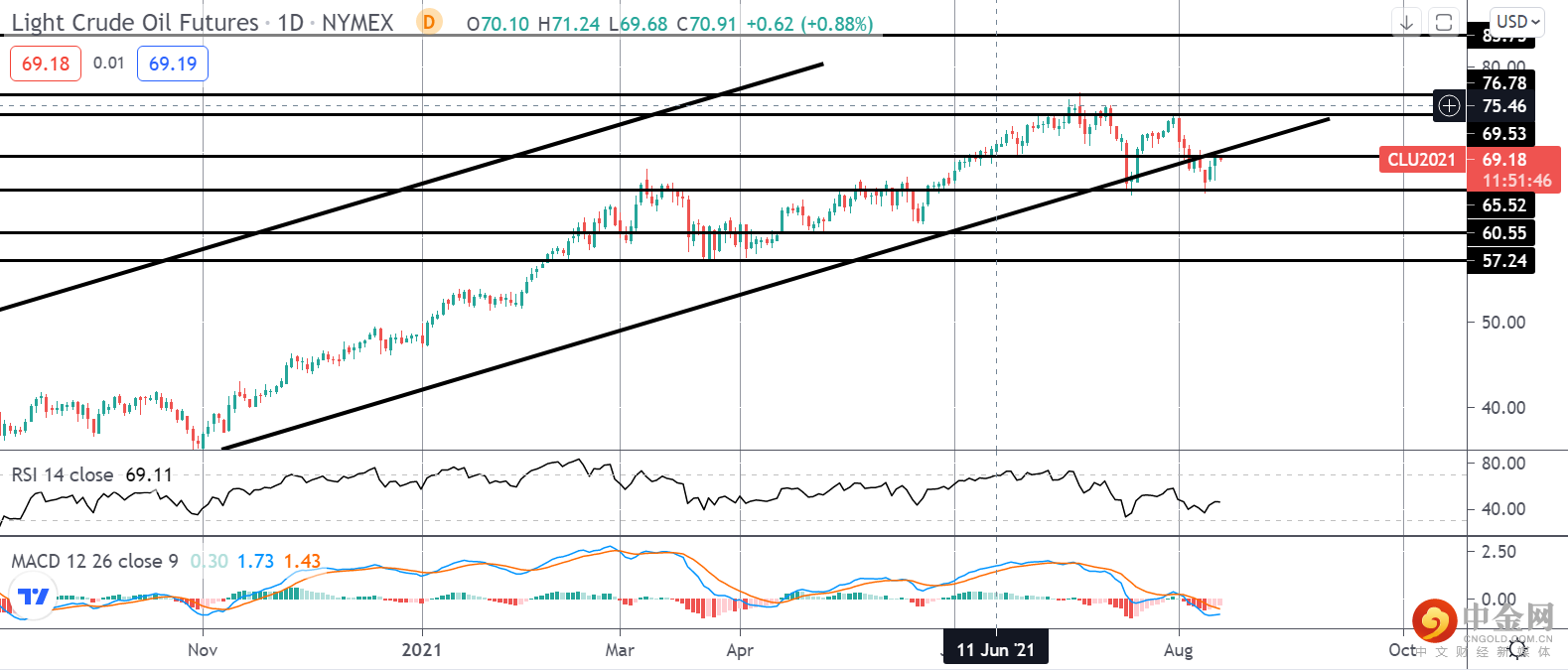 本周能源信息署的最新报告为原油多头提供了一些帮助。 EIA 报告称,上周商业库存减少了 40 万桶。虽然这比市场预期的减少 80 万桶要少,但它延续了近期库存下降的主题,反映出随着重新开放的继续,美国需求不断增加。