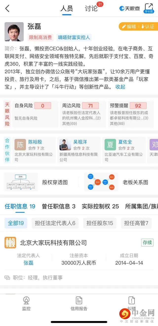 据天眼查显示,2021年8月,懒投资张磊被立案限制高消费,并被传边控。