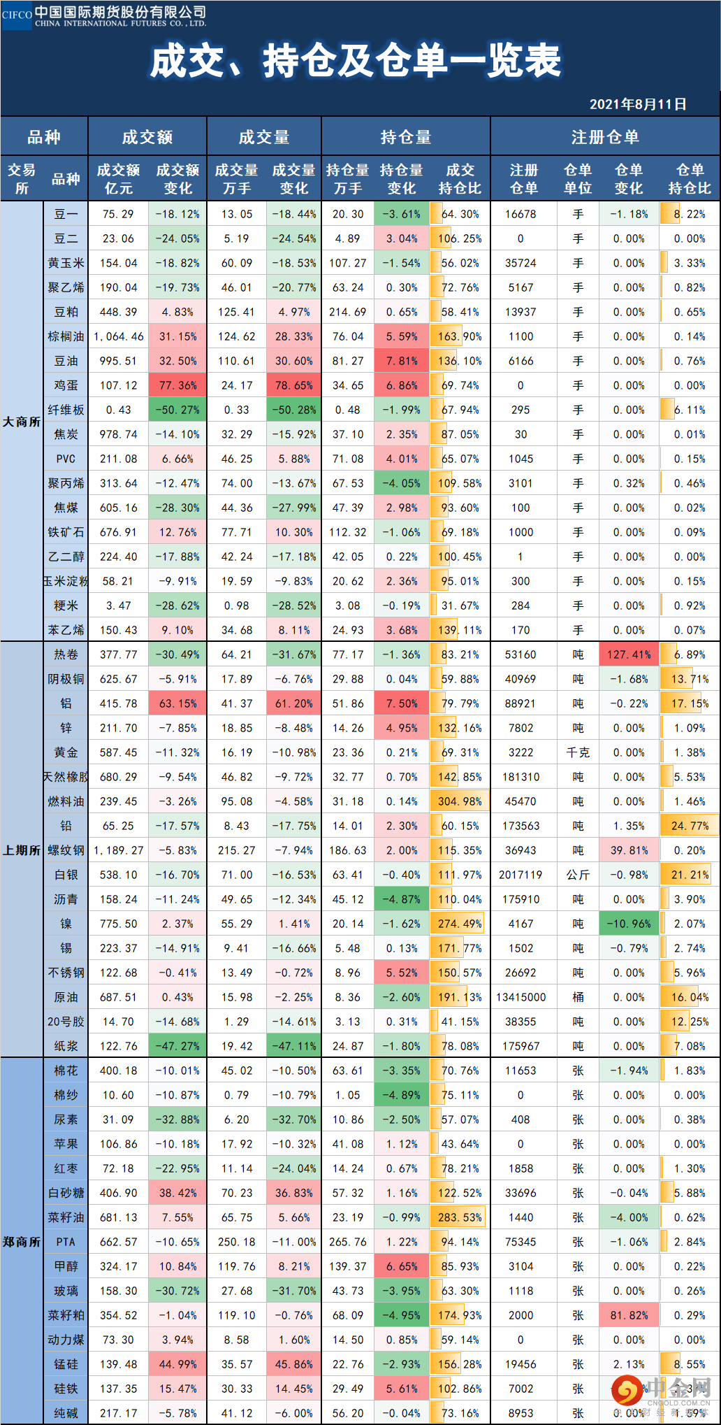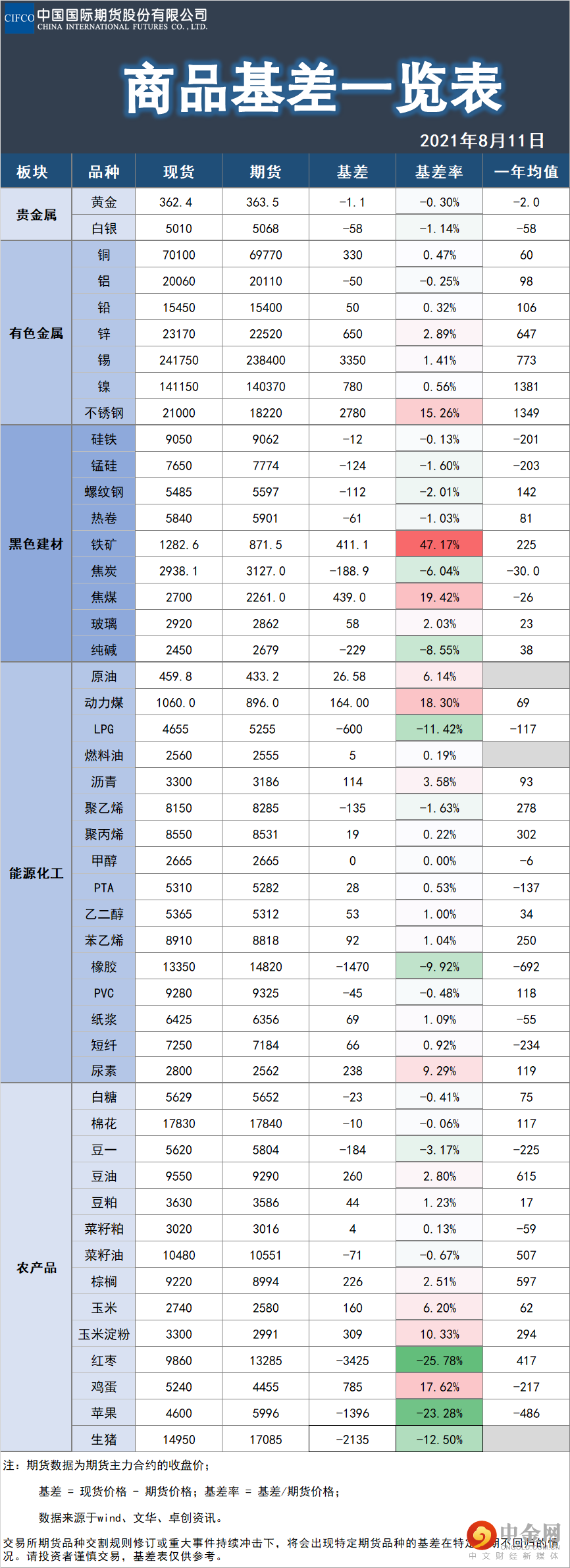 中期研究 | 基差、持仓及仓单一览表