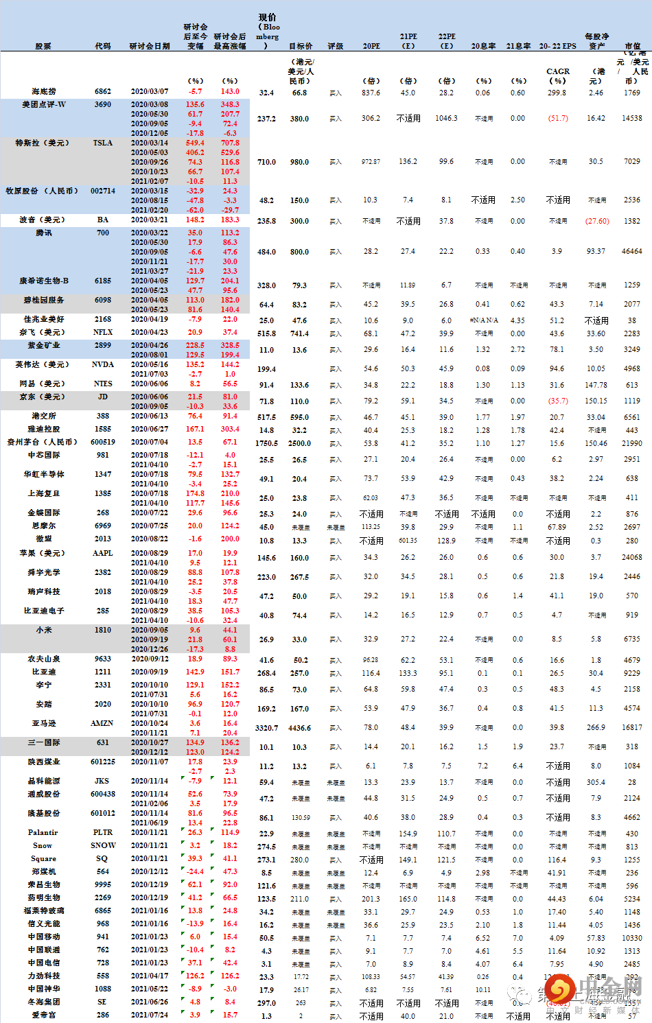 数据来源:彭博、第一上海,注:现价为2021年08月11日收市价