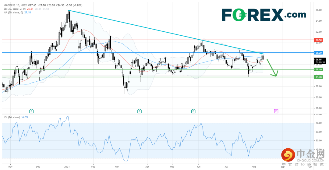 相反,若股价明确升穿28.20港元,则可能返回30.50港元,即6月高位。