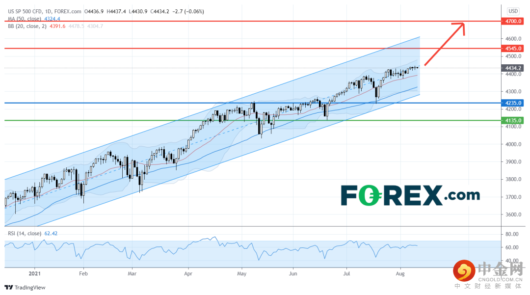 若看涨的技术格局不变,美国标准普尔500指数CFD将向上行目标4,545点和4,700点进发。