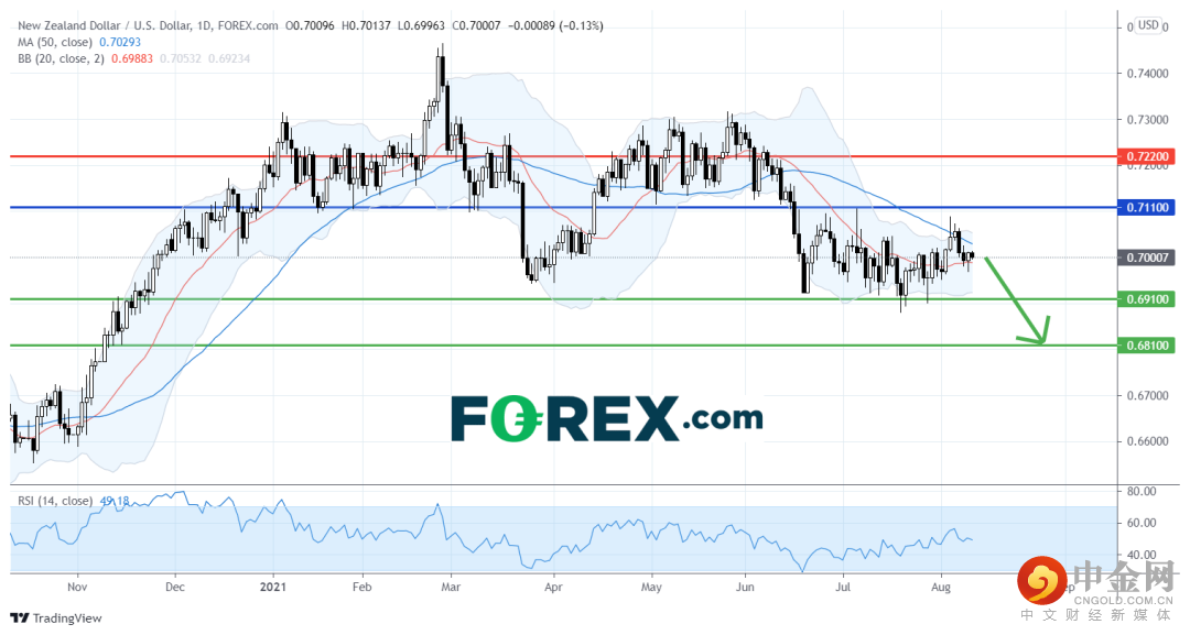 否则,预期纽元/美元退回到下行目标0.6910和0.6810。