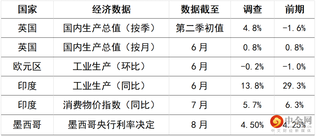 印度方面,在基数效应支持下,7月份消费物价指数通胀可能由6月份的6.3%放缓至5.7%(同比),即回落至央行2-6%的目标区间。此外,印度6月份工业生产预期将增长13.8%(同比),低于上月的29.3%(同比),惟在疫情压力缓和及放宽封锁限制后,数字可能录得按月升幅。