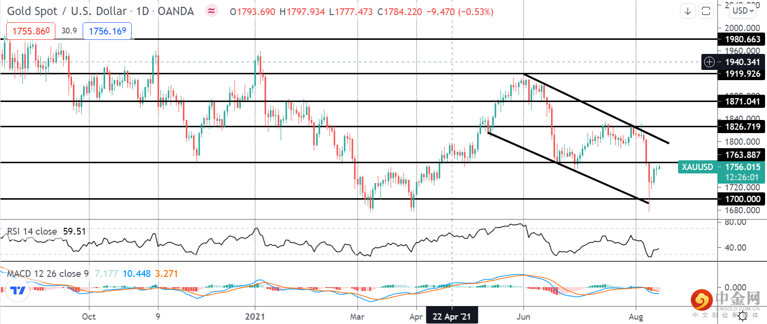 本周金价飙升,导致价格跌至 1700 关口和略低于该价格的 2021 年低点。尽管抛售速度很快,但此举伴随着强烈的看涨背离并迅速逆转走高。熊市通道低点也在该区域提供了进一步支撑,随着价格大幅反弹,市场现在正在重新测试 1763.88 阻力位。这是黄金的一个关键支点,在这里突破将使近期前景看涨,接下来将关注 1826.71 水平。