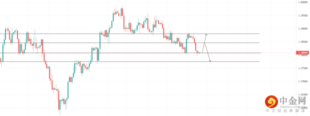 美元指数受支撑,英镑下跌,关注1.38076的支撑位置,4小时回调收多即可看多至压力位1.38813,止损1.37930;关注1.38468压力位,4小时受阻收空即可看空至1.37756支撑位,止损1.38619
