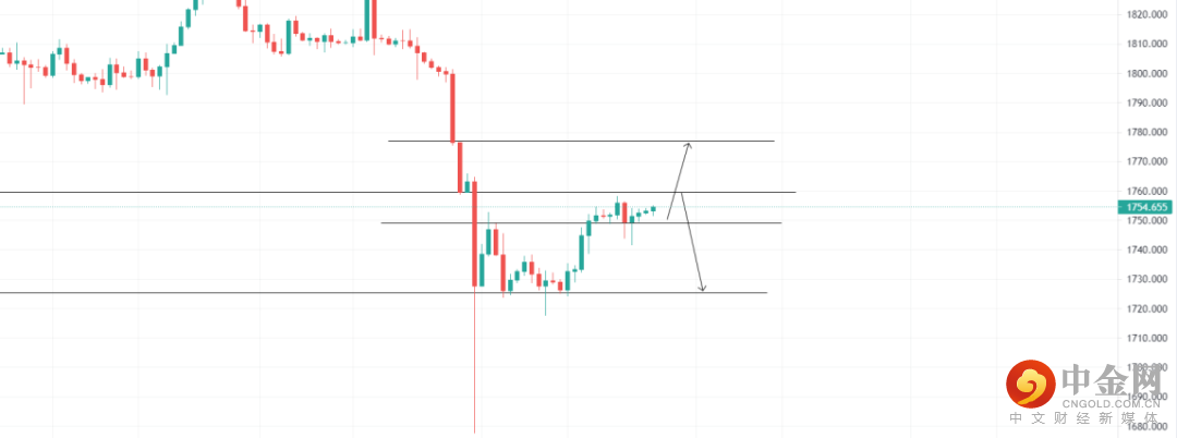 美元指数受支撑,黄金上涨,关注1749.22的支撑位,4小时回调收多即可看多至压力位1776.89位置,止损1743.38;关注1759.53压力位,4小时受阻收空即可看空至1725.48,止损1764.58