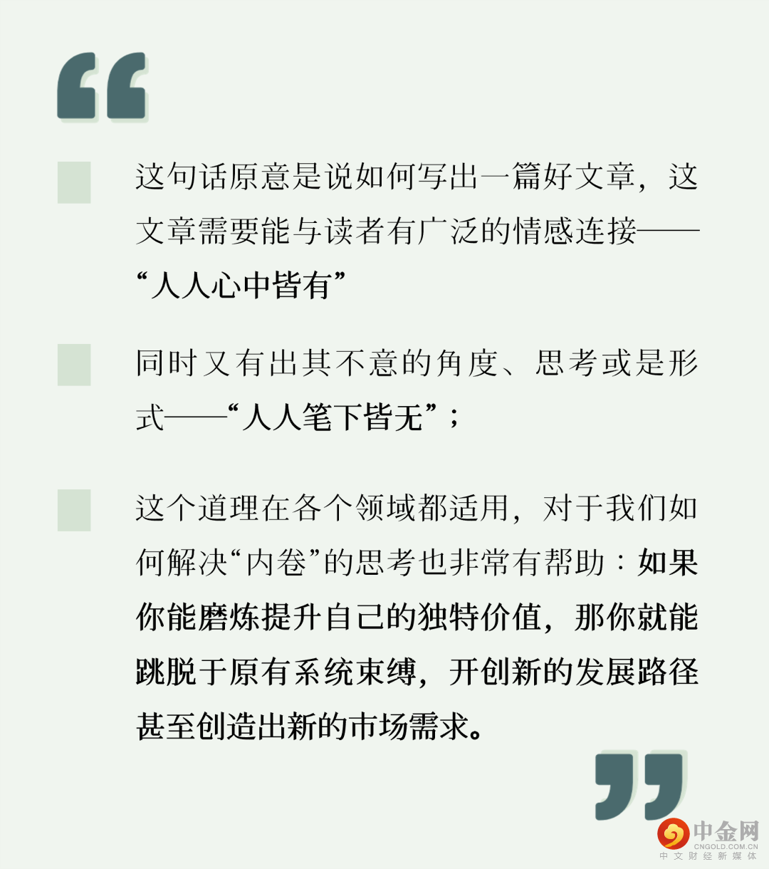 现场金句频出,在回答“后浪迭代官”关于如何跳出“内卷”的相关问题时,李峰先生引用了他大学时代中文老师的一句箴言“人人心中皆有,人人笔下皆无”。