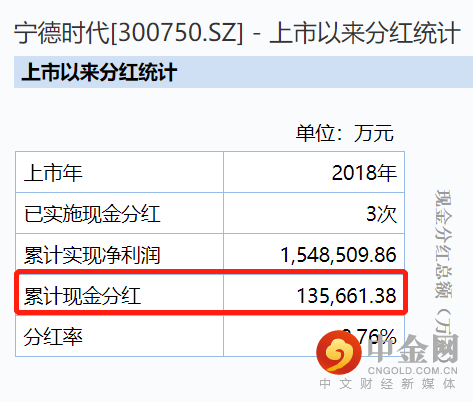值得注意的是,Wind数据显示,宁德时代2018年上市以来,累计现金分红仅为13.57亿元,而累计募资金额则高达978亿元(包含IPO融资、间接融资以及本次定增等),这意味着,该公司在资本市场上的融资规模是分红金额的72倍。