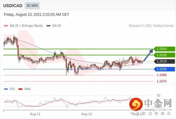 多头位于 1.2500 上方,目标位于 1.2535 和 1.2550。