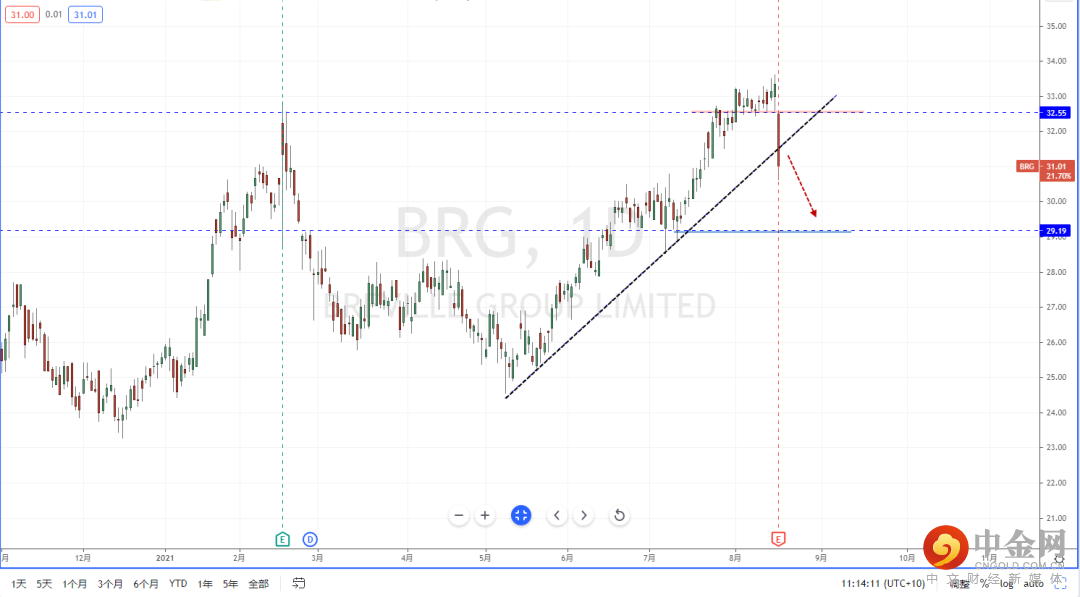 BRG:目前因市场环境有所转变,从ETF产业走势表现处于放缓下行阶段。并造成大部分个股在高位区域极端下行。从BRG现阶段的表现而言,在近期创出新高之后一度跌破水平支撑带32.55区域,以及上升趋势线的支撑作用。趋势头部状态已经形成,短期可适当关注价格调整后继续走弱的空头机会,下方目标位置参考29.19附近。