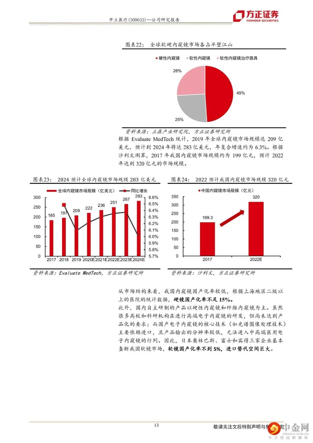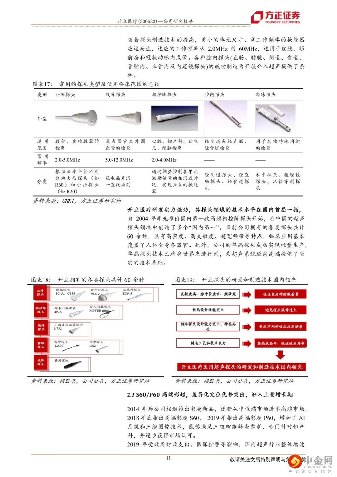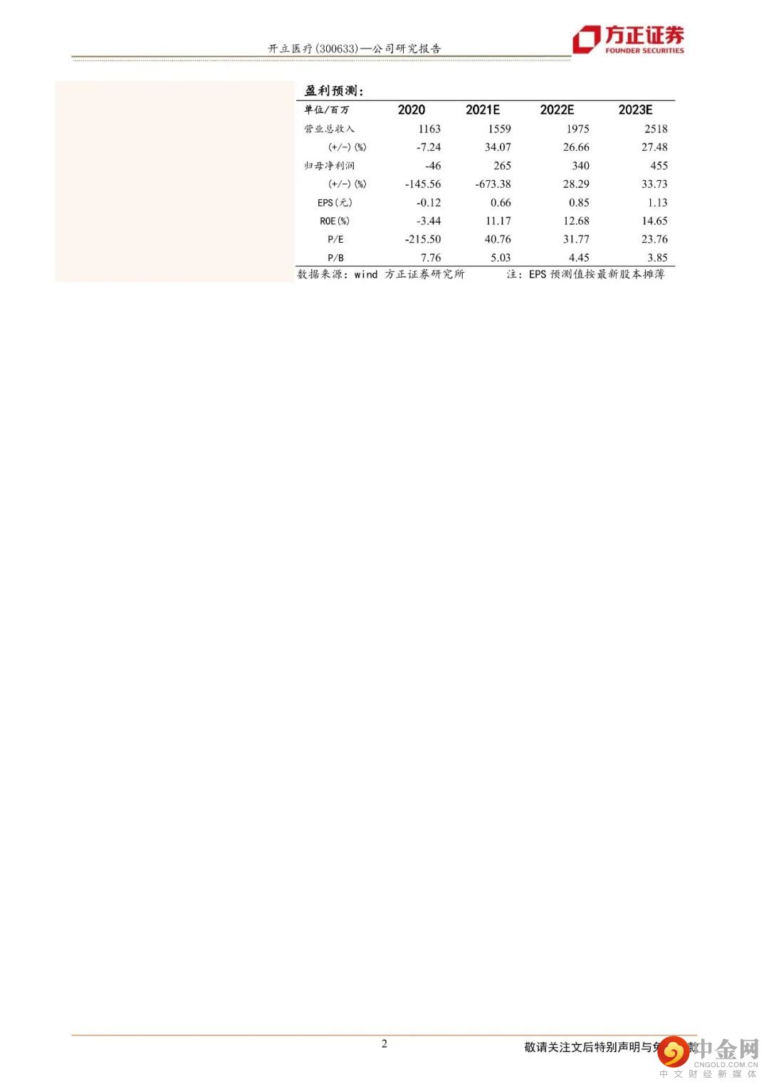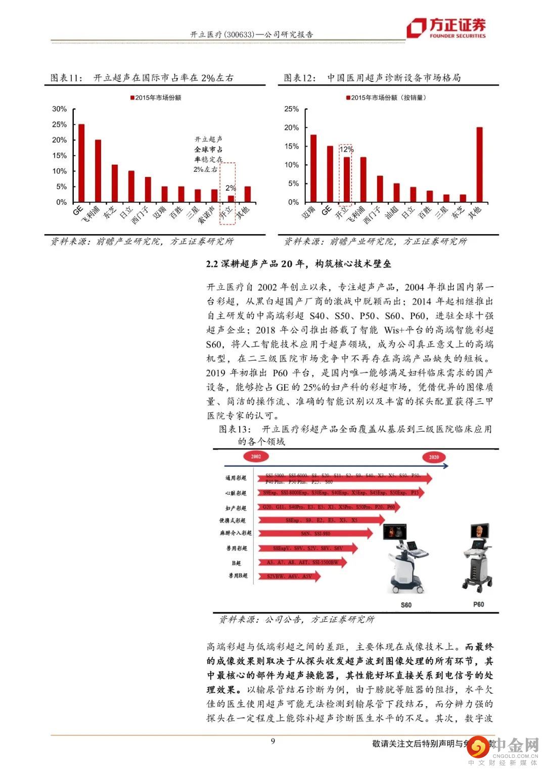 1)公司深耕超声领域20年,构筑核心技术壁垒,高端彩超S60/P60有望拉动超声业务重拾稳健增长。国内高端彩超技术仍被“GPS”(GE、飞利浦、西门子)等国外巨头垄断,国产品牌市占率偏低。公司2018年底推出的高端彩超S60逐步获得临床学术权威的认可,P60的AI系统和三维图像技术,能够满足三级四维筛查需求,是国产厂家中目前最领先的妇产科超声产品。我们预计随着S60、P60的临床推广及认可度逐步提升,公司2021年彩超业务有望实现20%左右增长。2)公司国产全高清内窥镜HD-500/550,打破外资技术封锁市场垄断局面,进入盈利收获期。由于内窥镜壁垒高,外资垄断市场,硬镜、软镜市场国产化率分别不足15%、2%。公司“软镜+硬镜+治疗器具”三位一体布局内窥镜业务,毛利率由2013年的24.8%逐步提升至2020年65.5%,2020年公司内镜业务3.08亿渐成规模进入盈利收获期,我们预计2021-2023年内镜业务有望达到50%的复合增速。3)持续加码研发,助力产品优化升级:4k高清镜、超声内窥镜、血管内超声等系列产品潜力突出。公司2020年研发投入2.37亿,占营收比重21%,显著高于同行企业。2021年年初4k高清硬镜系统获得国内注册证;第二代支气管镜已获 CE 认证,电子支气管内窥镜获得国内注册证;细镜、十二指肠镜目前在注册通道中。2021 年超声电子上消化道内窥镜EG-UC5T获欧盟CE认证、预计近年有望完成国内注册,分享消化道癌症筛查诊断大市场。投资评级与估值:预计公司2021-2023年归母净利润分别为2.65亿、3.4亿和4.55亿元,同比分别增长673%、28.3%和33.7%。2021-2023年EPS分别为0.66、0.85和1.13元,对应21-23年PE估值分别为41、32、24倍,维持公司“强烈推荐”投资评级。风险提示:疫情持续影响;市场竞争加剧;新品研发风险;海外产品销售不及预期;商誉减值风险。