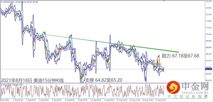 昨日(17日)欧元区公布第二季度GDP不佳,以及美国公布零售销售不及市场预期,造成道琼斯和纳指皆跌逾1%。受到美股下跌影响油价再度回落至66美元附近整理。晚间美国公布工业产出利好,一度带动油价急涨约2%。美联储主席鲍威尔称新冠疫情在经济活动蒙上阴影,美股持续下探当日新低,油价逆势下跌至66美元上方震荡整理。